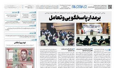 صفحه یک روزنامه جامجم چهارشنبه 1404/09/19